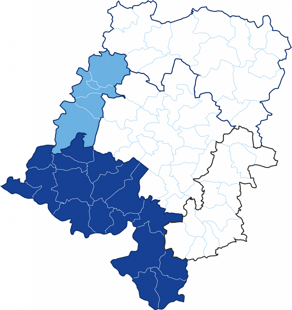Obejmuje gminy: Baborów, Biała, Branice, Brzeg, Głogówek, Głubczyce, Głuchołazy, Grodków, Kamiennik, Kietrz, Korfantów, Lubrza, Lubsza, Łambinowice, Nysa, Olszanka, Otmuchów, Paczków, Pakosławice, Prudnik, Skarbimierz, Skoroszyce.